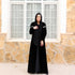A luxurious abaya that exudes royal elegance and refined craftsmanship. Made from premium black Spanish velvet, it features hand embroidery with natural pearls and Swarovski crystals, creating a timeless and eye-catching piece.